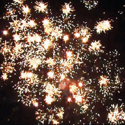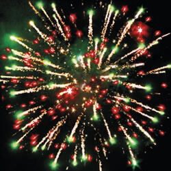 3. Красные звезды с пышными хвостами (кокос) и зеленое мерцание;
