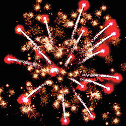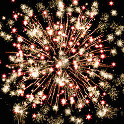 3. золотых, коротких трещащих форсов и красных мерцающих огней;