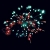 Яркие цветные звезды разрываются цветными сферами с шуршащими мерцающими хвостами, с кольцами цветных огней, с блуждающими огнями, залп трещащих огней, залп фиолетовых огней с переходом в белые и голубые
