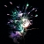 Восемь залпов в виде комет с искристыми шлейфами разрываются разноцветными сферами и мерцающими облаками.