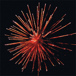 6. синих огней с серебряными рыбками в центре, красочная концовка из нескольких залпов.