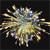 Разноцветные кометы разрываются сферами из: красных и белых пульсирующих огней; фиолетовых и зеленых пульсирующих огней; красных огней с форсами; зеленых огней с форсами; красных огней; зеленых мерцающих огней; синих огней с золотыми ниспадающими форсами; синих огней и золотых форсов; серебряных форсов; зеленых крупных огней; белых мерцающих огней; красных и трещащих огней; множества трещащих сфер. Красочная концовка.