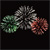 Веер. Разноцветные кометы разрываются сферами из: красных огней с серебряными форсами; зеленых огней с серебряными форсами; серебряных форсов; трещащих огней.