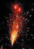 Поток разлетающихся серебряных трещащих искр, красных, зеленых огней и серебряных звездочек, красный огонь в основании и поток серебряных огней, лицо со светящимися глазами и ртом.