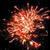 Разноцветные кометы разрываются сферами из красных, красных пульсирующих, синих, зеленых с золотыми форсами и трещащих огней, имножества трещащих сфер и свистящих элементов.