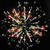Разноцветные кометы разрываются сферами из: красных огней с серебряными форсами и зеленых мерцающих огней; зеленых огней с серебряными форсами; серебряных мерцающих форсов; красных огней и множества трещащих сфер (залпы).