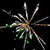 Разноцветные кометы разрываются сферами из: красных огней и серебряных с трещащими искрами форсов; зеленых огней и серебряных с трещащими искрами форсов. В конце залп.
