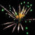 Разноцветные кометы разрываются сферами из: золотых форсов с шуршащими серебряными искрами и красных огней; золотых форсов с шуршащими серебряными искрами и зеленых огней; золотых форсов с шуршащими серебряными искрами и золотых мерцающих огней; множества трещащих сфер.