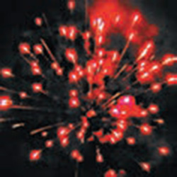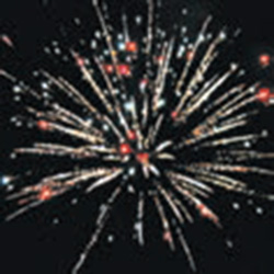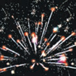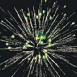 4. Множество серебряных ниспадающих нитей (парча), зеленая сфера (пион) и облако треска (трещащий дождь).