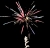 Мощная ракета с роскошным шлейфом разрывается красно-зеленой сферой.