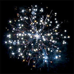 4 эффекта. Разноцветные кометы разрываются сферами из: красных и синих огней, фиолетовых и зеленых мерцающих огней, серебряных форсов и синих огней, красных огней и множества трещащих сфер.