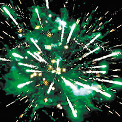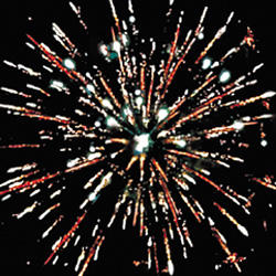 1. Красные звезды с пышными хвостами (кокос) и облако треска (трещащий дождь).