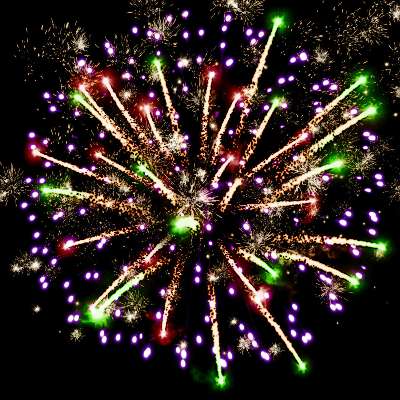 2. Серебряных форсов, красных, зеленых, фиолетовых и трещащих огней;