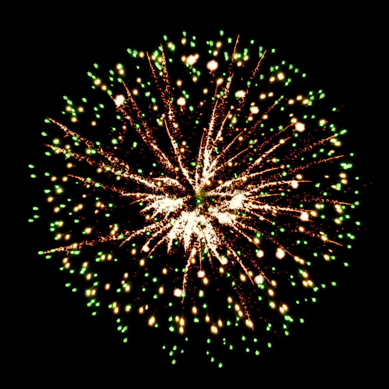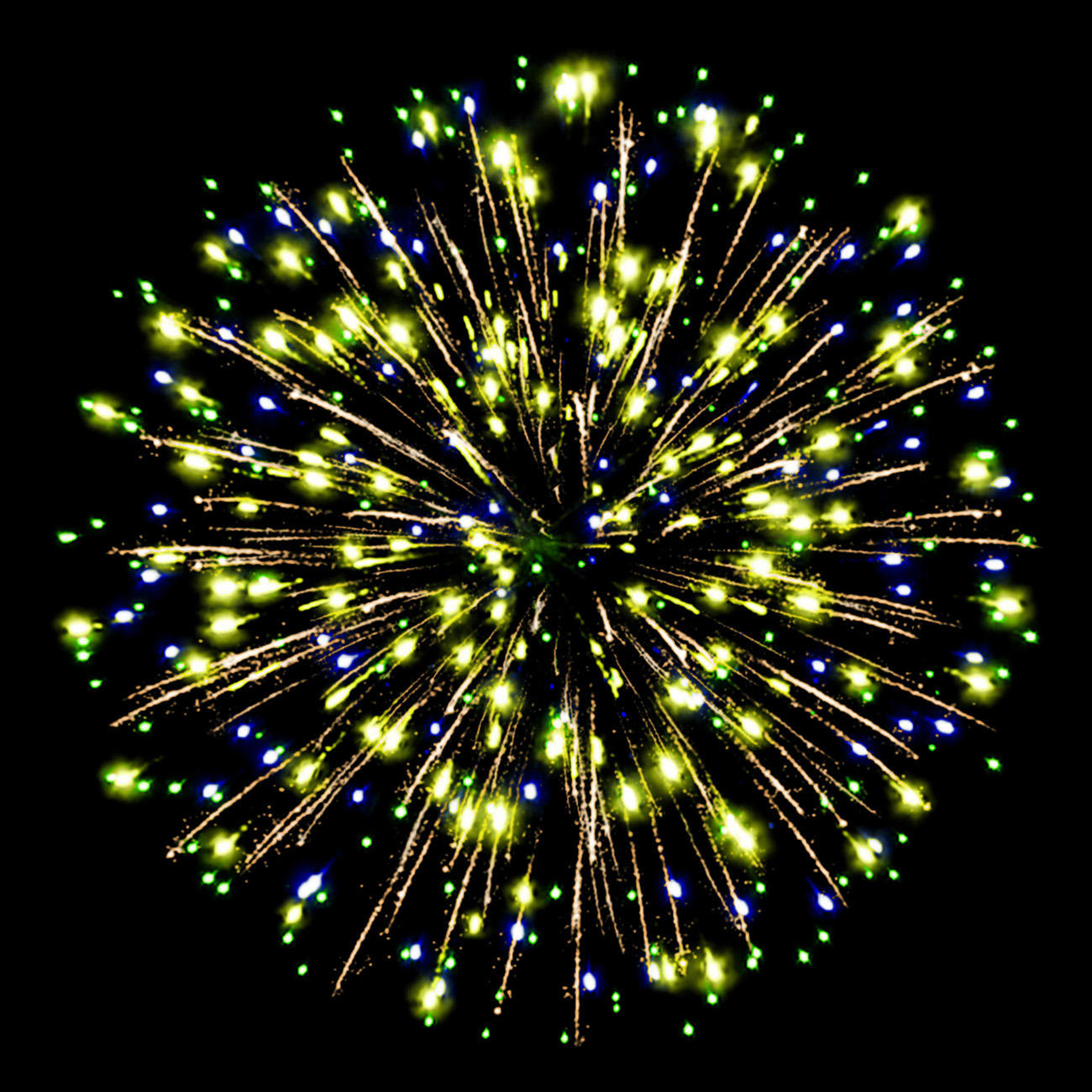 16. Сферы из серебряных форсов, оранжевых, зеленых и золотых трещащих огней;