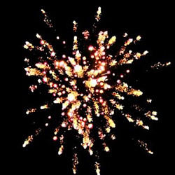 12. Красные кометы переходят в желтые георгины с зелеными мерцающими искрами.