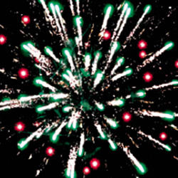 2. Зеленые звезды с пышными хвостами (кокос), красное мерцание и облако треска (трещащий дождь).