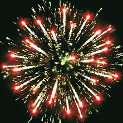 10. Выстреливает подряд: Свист Красные звезды с пышными хвостами (кокос) и зеленое мерцание Желтые звезды с пышными хвостами (кокос) и зеленое мерцание Зеленые звезды с пышными хвостами (кокос) и белое мерцание Красные звезды и облако треска (трещащая хризантема) Зеленые звезды и облако треска (трещащая хризантема) Множество серебряных ниспадающих нитей (парча) и красные звезды Оранжевые звезды и облако треска (трещащая хризантема) Множество серебряных ниспадающих нитей (парча) и фиолетовые звезды Фиолетовые звезды с пышными хвостами (кокос) и белое мерцание