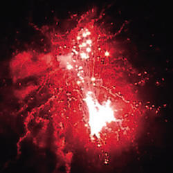 12. ЗАЛПЫ: комета разрывается множеством серебряных ниспадающих нитей (парча) и красным мерцанием