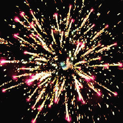16. ЗАЛП: кометы с серебряными хвостами разрываются облаком треска (трещащая хризантема).