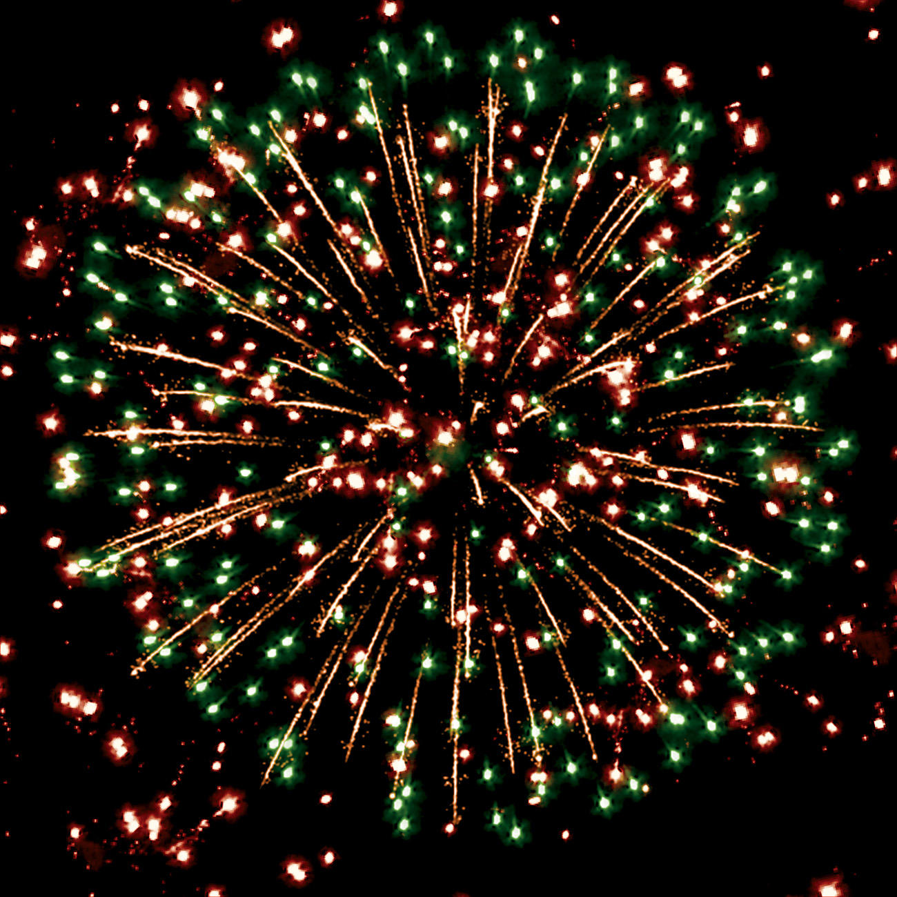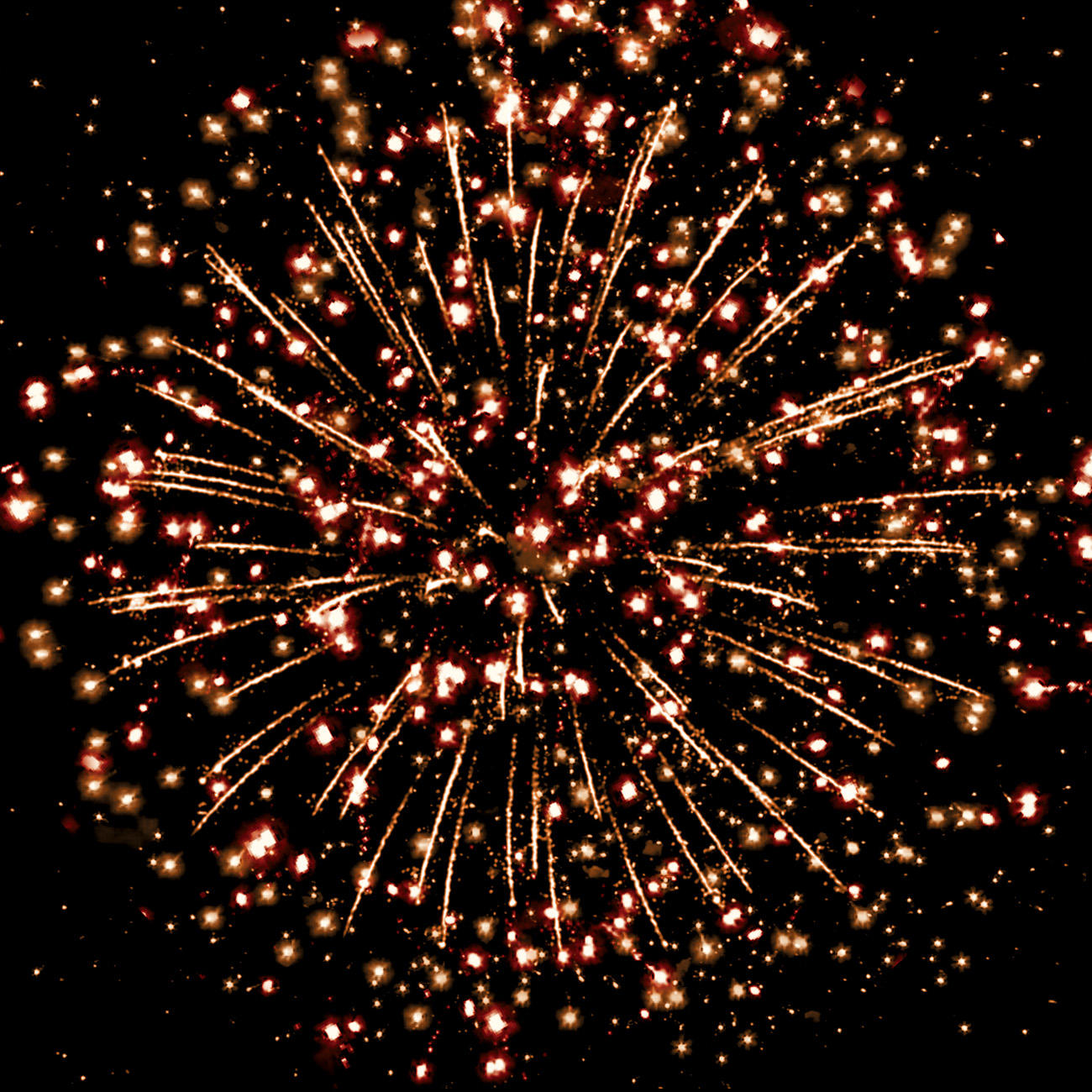 2. золотых искристых трещащих форсов, красных и золотых мерцающих огней.