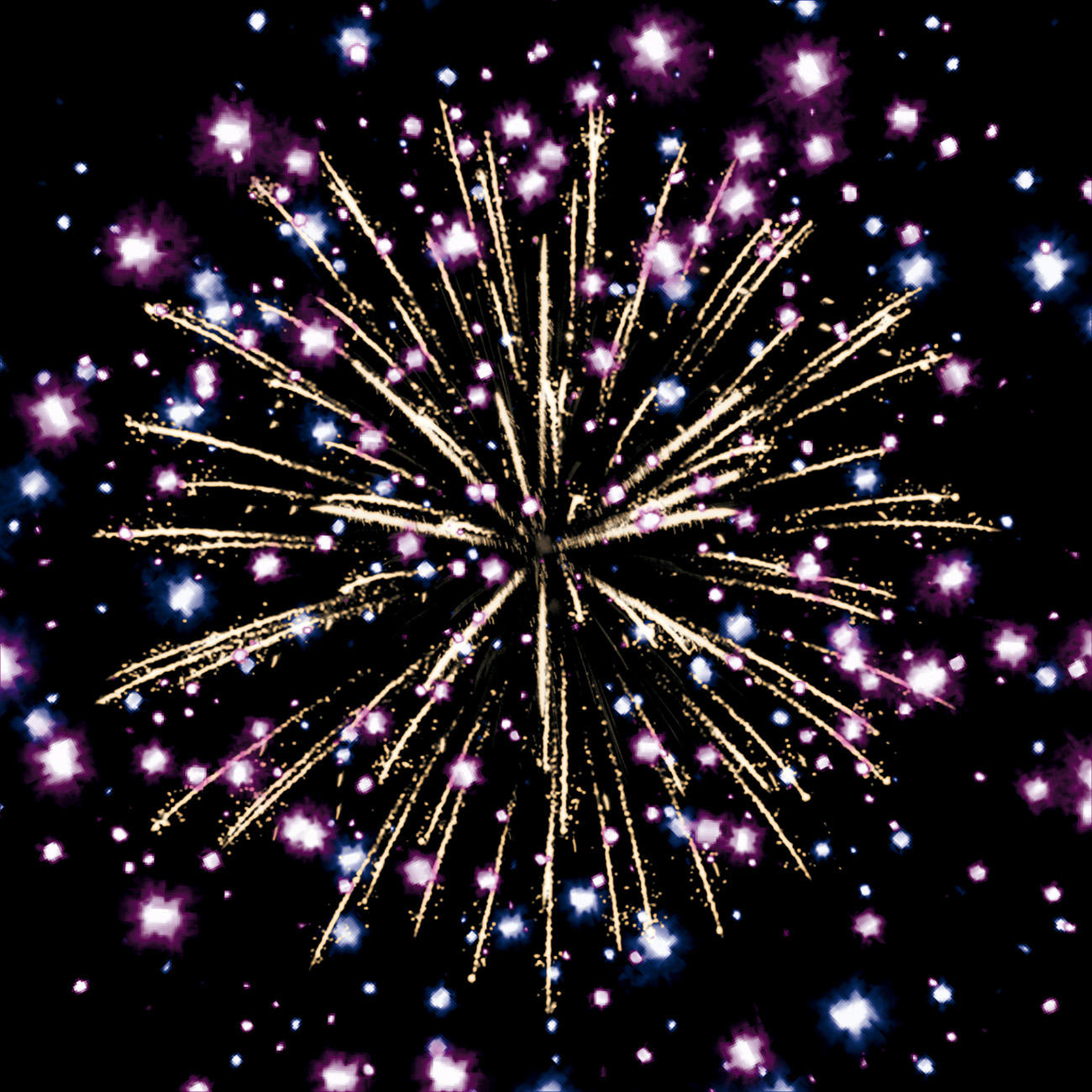 4. золотых форсов с серебряными мерцающими искрами, голубых и фиолетовых огней.