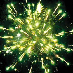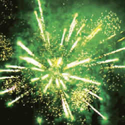 4. Финальный залп: Зеленые звезды с пышными хвостами (кокос) и треск