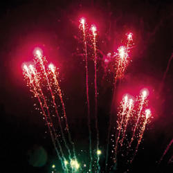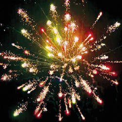 13. ЗАЛП: Серебряные звезды с пышными трещащими хвостами (трещащий кокос) и красное мерцание