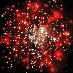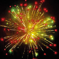 3. Сфера серебряных хвостов с переходом в красно- зеленые звезды (цветная хризантема)
