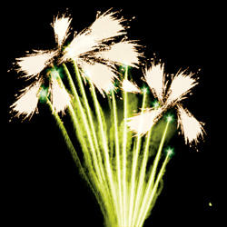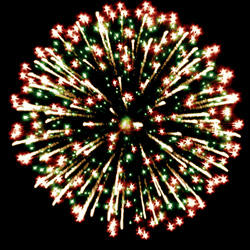 21. Веер: красные, зелёные кометы, букеты из красных, зелёных, серебряных мерцающих огоньков, золотых искристых форсов.