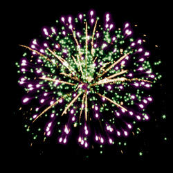 7. Серебряных форсов с зелёными огнями на концах, фиолетовых огней и множества трещащих разлетающихся искр; 8-