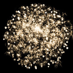 26 эффектов: Нижний уровень. Букеты из золотых трасс, синих и трещащих огоньков. Верхний уровень. Разноцветные кометы, золотые с мерцающими красными, зелёными, золотыми искрами трассы разрываются сферами из:
