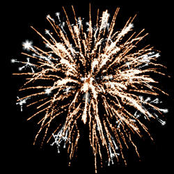 8. Золотых форсов с разлетающимися серебряными огнями на концах и серебряных искр;