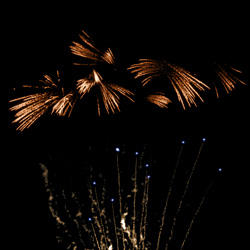 20. Веер. Золотые с серебряными трещащими мерцающими искрами трассы, сферы из золотых форсов и золотых мерцающих огней. 21-