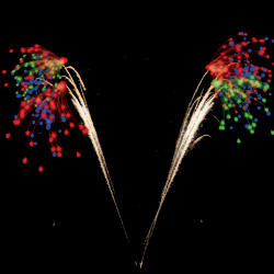18. Веер: боковые выстрелы – букеты из синих, красных и зелёных огней.