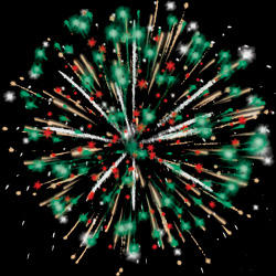 21. Веер: серебряные форсовые трассы с красными, зелёными огнями на концах, сферы из зелёных трещащих, зелёных и трещащих огней.