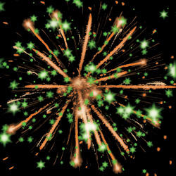 7. серебряных форсов с красными, зелёными огнями на концах и серебряных трещащих огней;