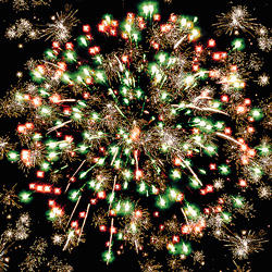 2. фиолетовых, зелёных и золотых мерцающих огней;