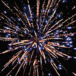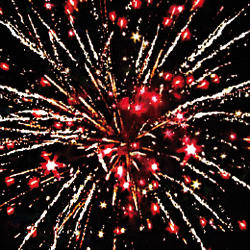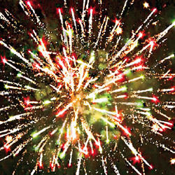 10. ЗАЛП: Красно- зеленые звезды с пышными хвостами (кокос) и облако треска (трещащая хризантема)