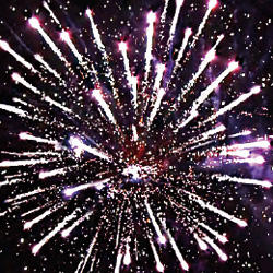 6. Фиолетовые звезды с пышными хвостами (кокос) и облако треска (трещащий дождь)