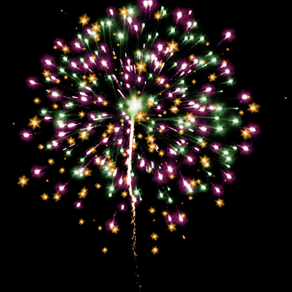 2. фиолетовых, зелёных и золотых мерцающих огней;