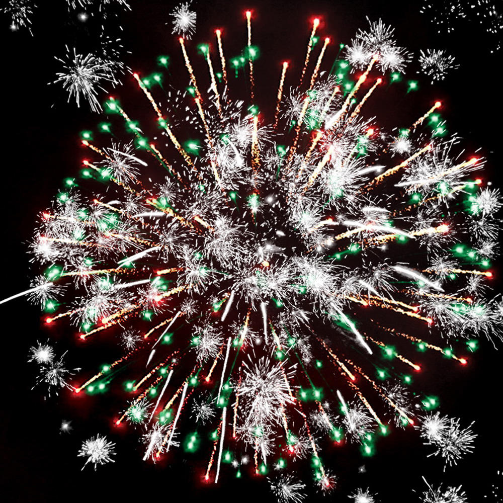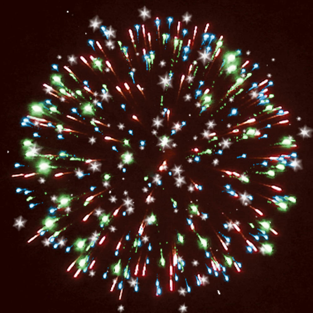 1-2. красных, зелёных и белых мерцающих, трещащих огней;