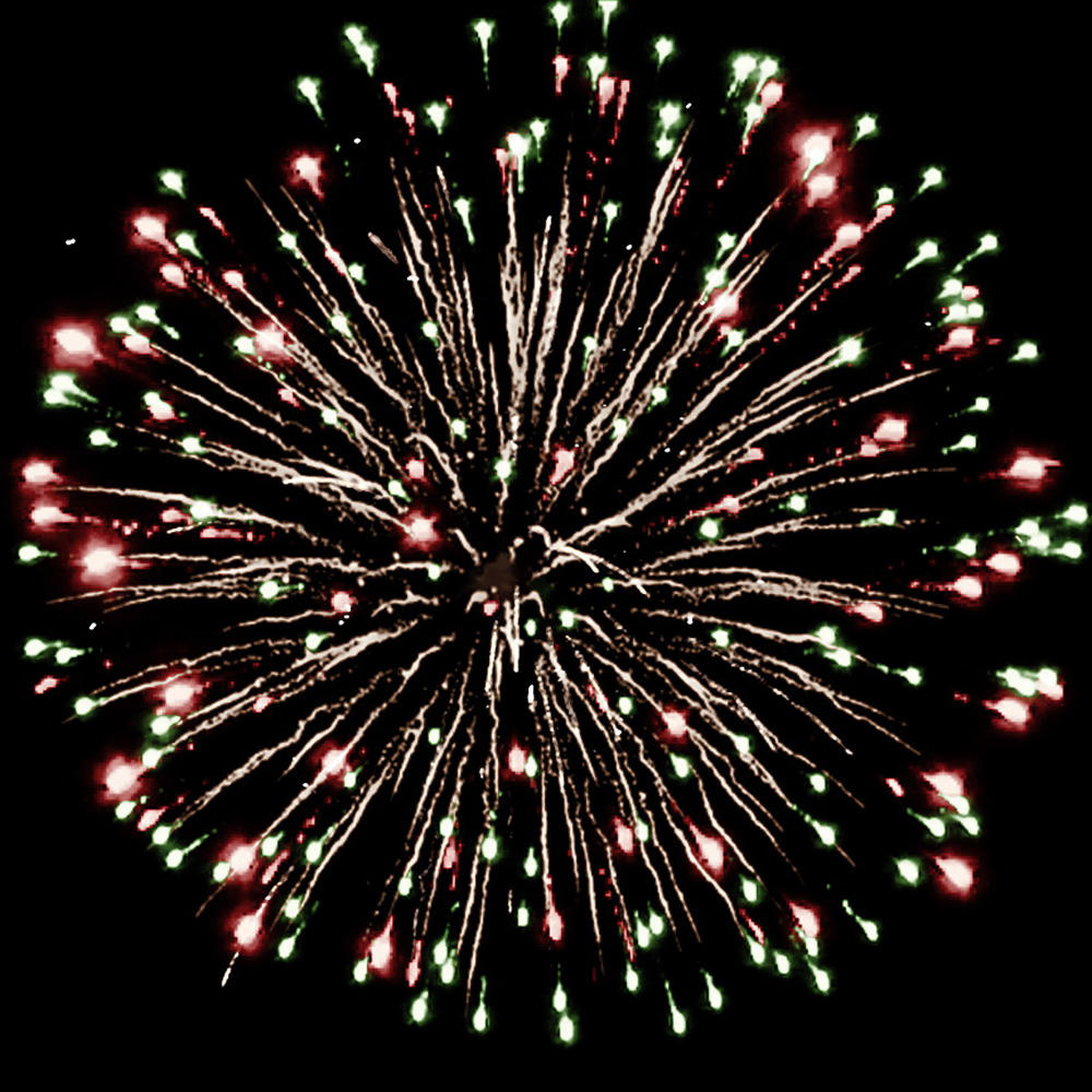 2. фиолетовых и зелёных огней, красных огней с переходом в золотые;