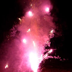 2. Золотые искры и хаотично разлетающиеся розовые огни (рыбки).