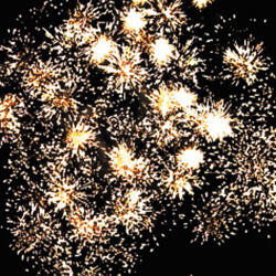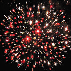 2. Фиолетовая сфера (пион) и облако золотого треска (трещащая хризантема).