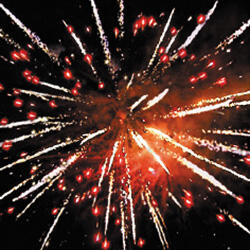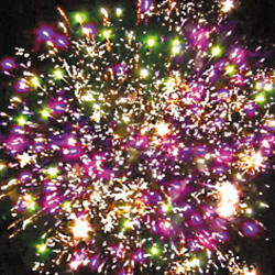 5. Трещащая комета разрывается серебряными звездами с пышными трещащими хвостами (трещащий кокос) и белым мерцанием.