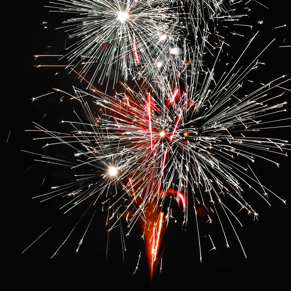 2. Поток красных и серебряных трещащих огней.