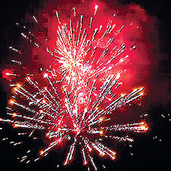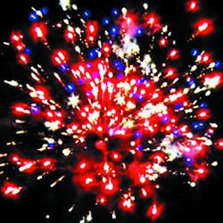 4. Красно-синий сферический разрыв (пион) и облако трещащих разрывов (трещащий дождь).