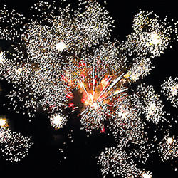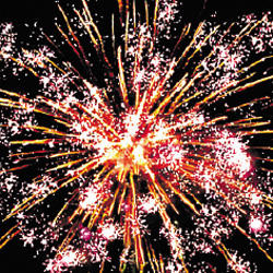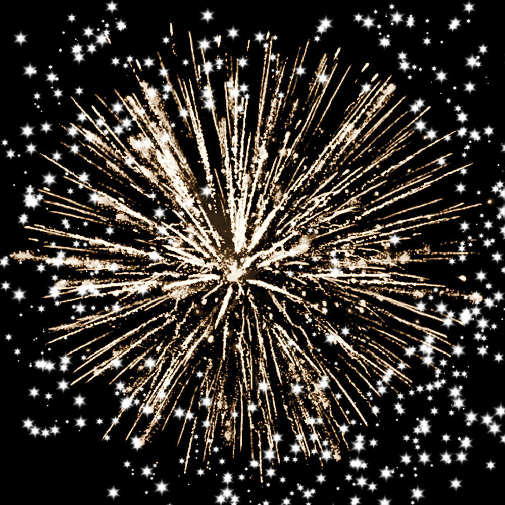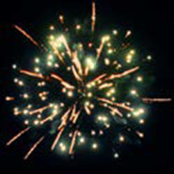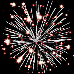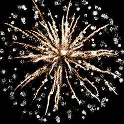 5. Множества серебряных разлетающихся трещащих искр (залп).