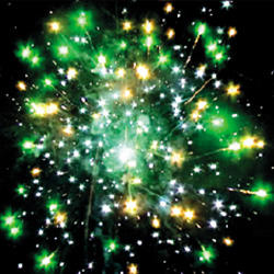 1. Разрыв зелеными звездами с пышными хвостами (кокос) и золотое мерцание.