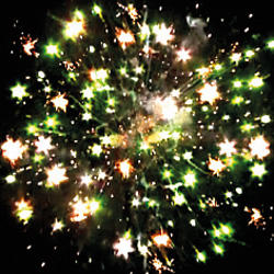 1. Разрыв красными звездами с пышными хвостами (кокос) и белое мерцание.